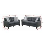 Finished in a charcoal color, the sofa and loveseat bring a modern and refined look that complements a wide range of interior décor styles. Designed for indoor use, this two-piece set provides dependable comfort for daily relaxation, family time, and social gatherings.