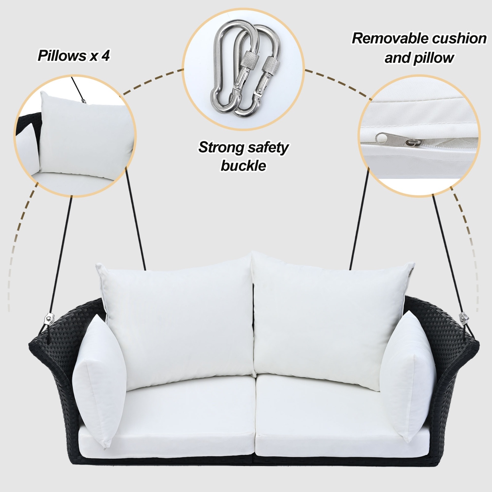 • [EXTRA COMFORT] The swing comes with a thick seat cushion and a plump pillow, providing extra comfort and support for your back and neck.