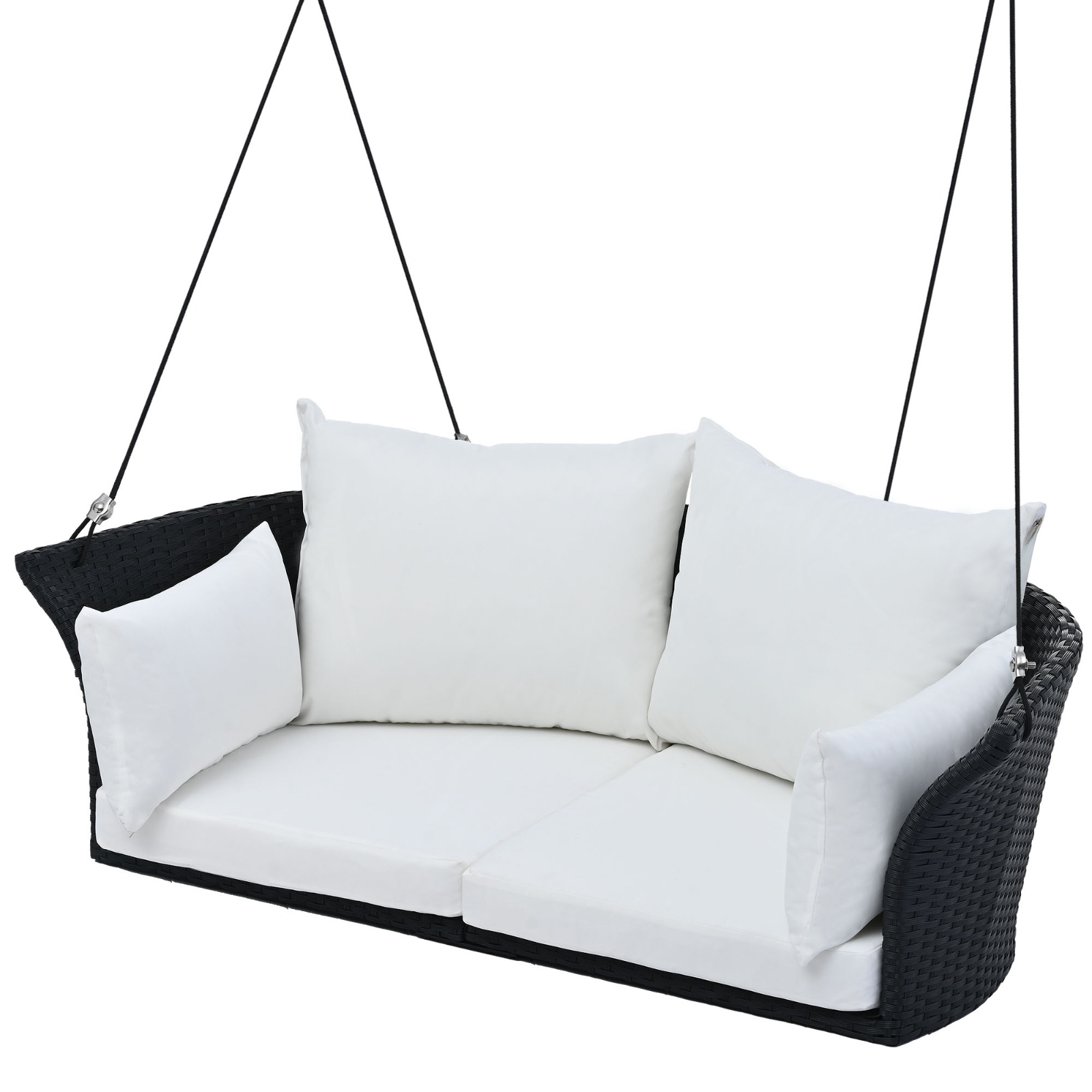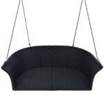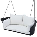 Orpixia 51.9″ 2-Person Hanging Swing Chair – Black Wicker Rattan Porch Swing with Ropes