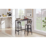 Home Stools Orpixia Bar Table Set With 2 Bar Stools PU Soft Seat With Backrest, Grey