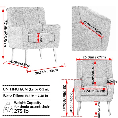 Designed for indoor use, this upholstered lounge chair works well in living rooms, bedrooms, lounges, reading corners, and reception areas. Its refined appearance allows it to function both as a comfortable seating option and as a decorative accent piece.