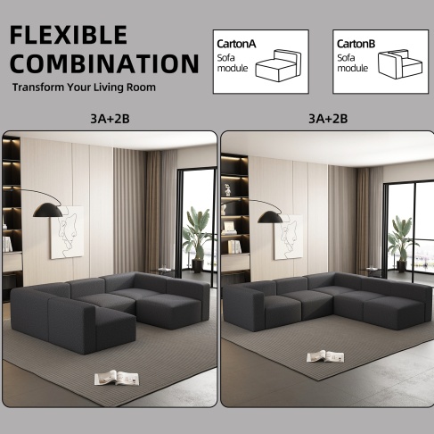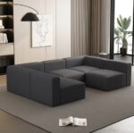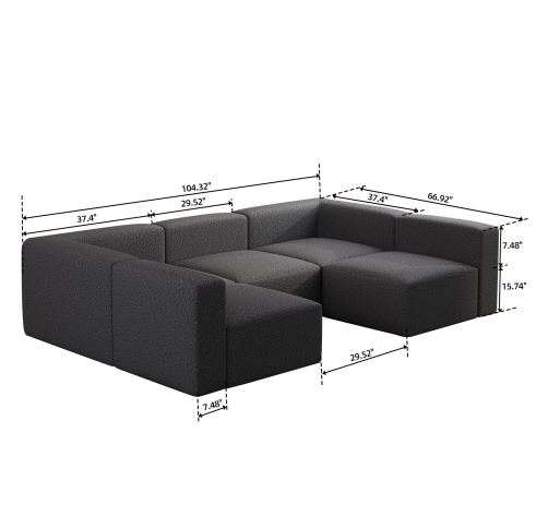 The Orpixia Dark Grey Modular Sectional Sofa with Chaise & Ottoman is designed to deliver flexible comfort and modern style for indoor living spaces. Featuring a modular construction, this sectional sofa allows users to arrange the seating layout to suit different room sizes and personal preferences. The included chaise offers extended lounging comfort, while the ottoman adds versatility for foot support or additional seating.