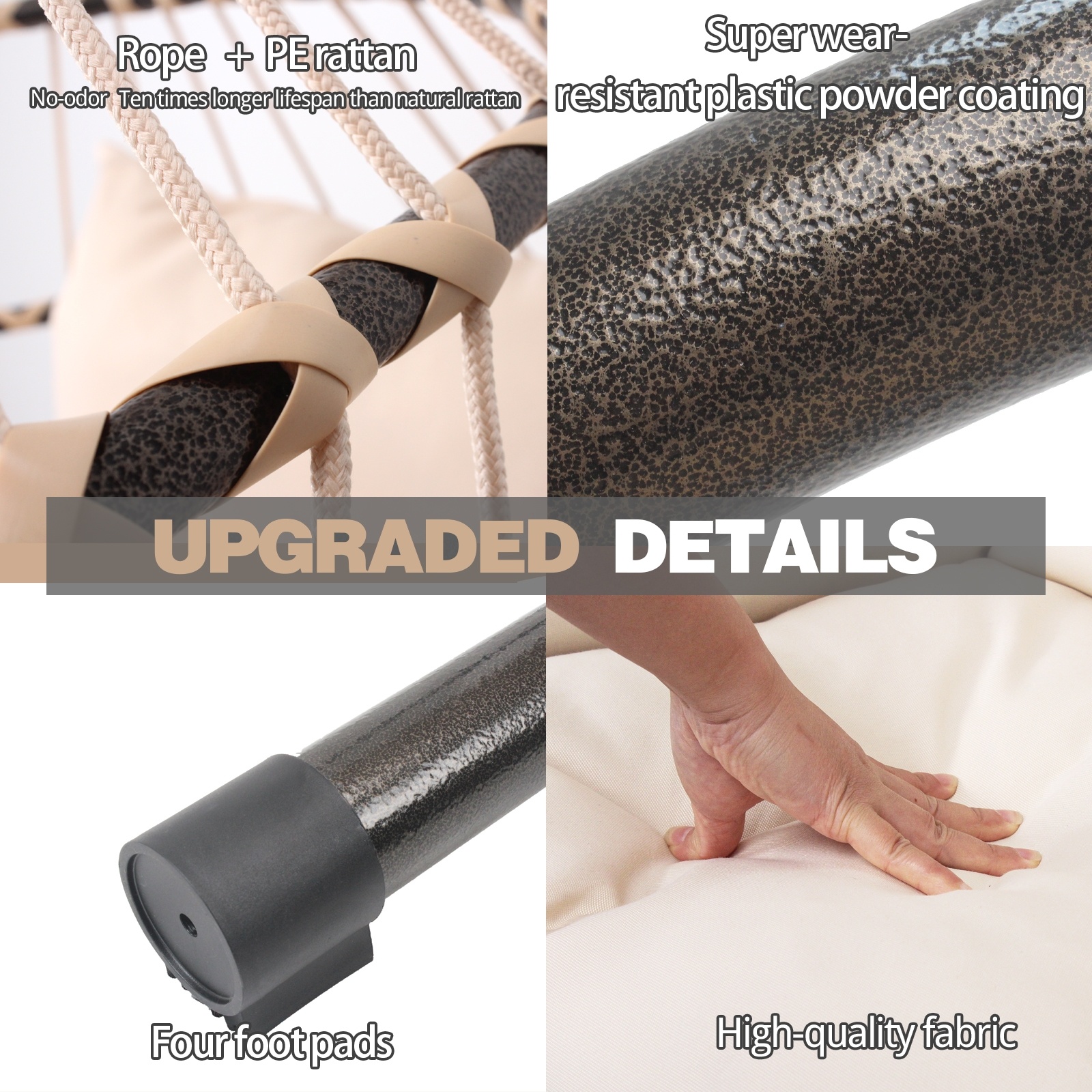 The standout feature of this swing chair is its foldable structure, allowing easy storage and portability. When not in use, the chair can be folded compactly, making it ideal for homes with limited space or for seasonal outdoor storage.